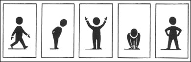 En 5 cases représentant une silhouette stylisée, on voit l’histoire d’une personne qui marche dans la rue, qui s’aperçoit qu’un de ses lacets est défait et qui le refait. On a donc 5 fragments de cette histoire et c’est notre esprit qui les relie en une totalité, la liaison se faisant par les espaces qui séparent les cases. C’est cette bande blanche étroite qui fait travailler notre esprit, et le pousse à imaginer les moments intermédiaires afin de percevoir une réalité globale et continue, à la fois dans le temps et dans l’espace. Cet espace de non-dit est un des éléments fondamentaux de la bande dessinée. On peut estimer que si le dessin est le vocabulaire de la bande dessinée, l’ellipse en est la grammaire.